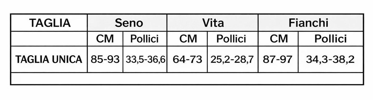 La taglia unica veste indicativamente:
